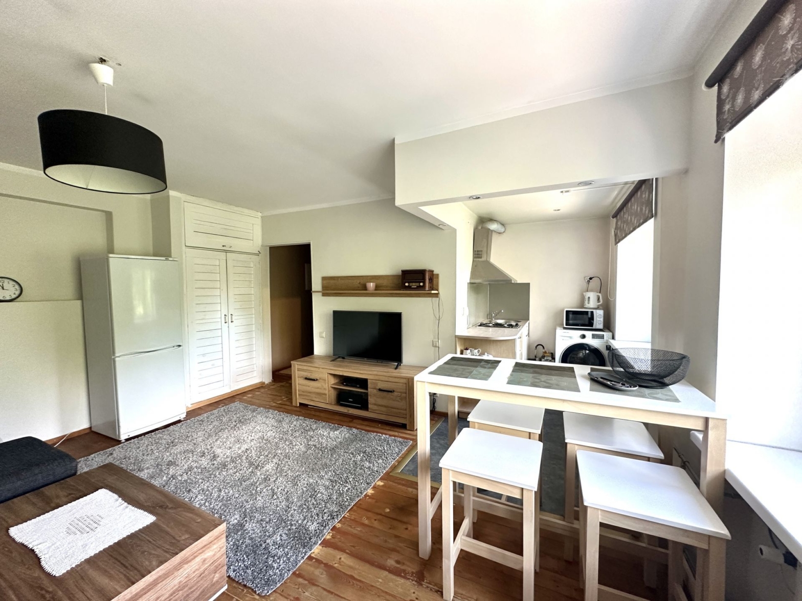 Korteri seinad ja laed on läbinud värskendusremondi, elutoa ning köögi põrandat katab laud põrand, magamistoas on laminaat. Uksed on täispuidust, paigaldatud on 3-kordsed PVC aknad. Korterisse jääb piltidel olev mööbel.