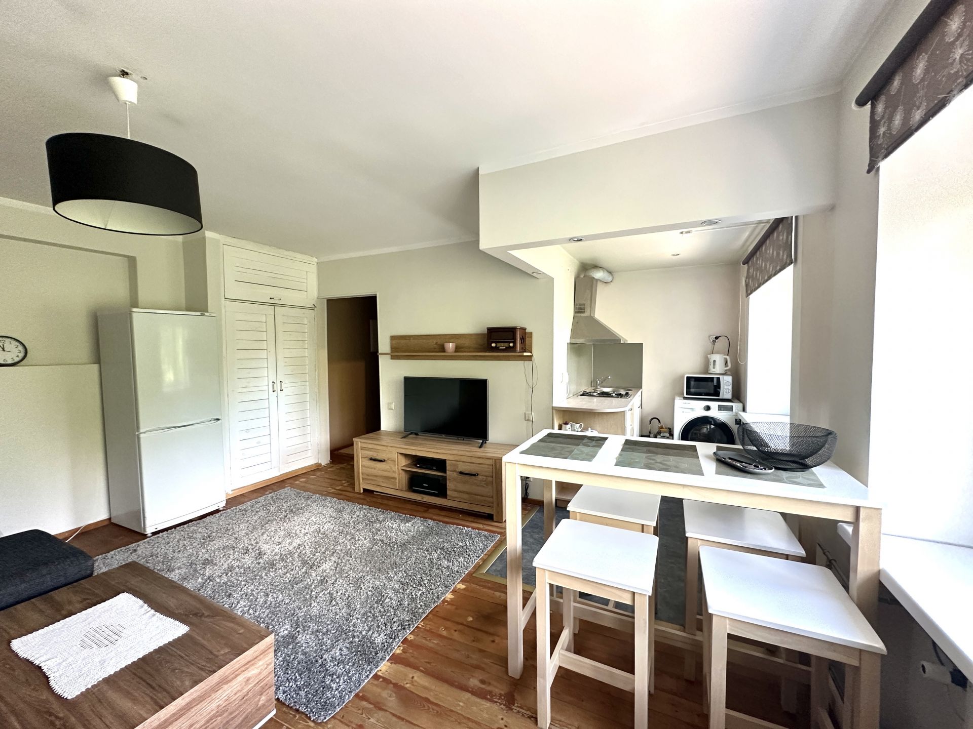Üürile antakse hubane ja armas avatud köögi ning ühe magamistoaga korter maja neljandal korrusel.