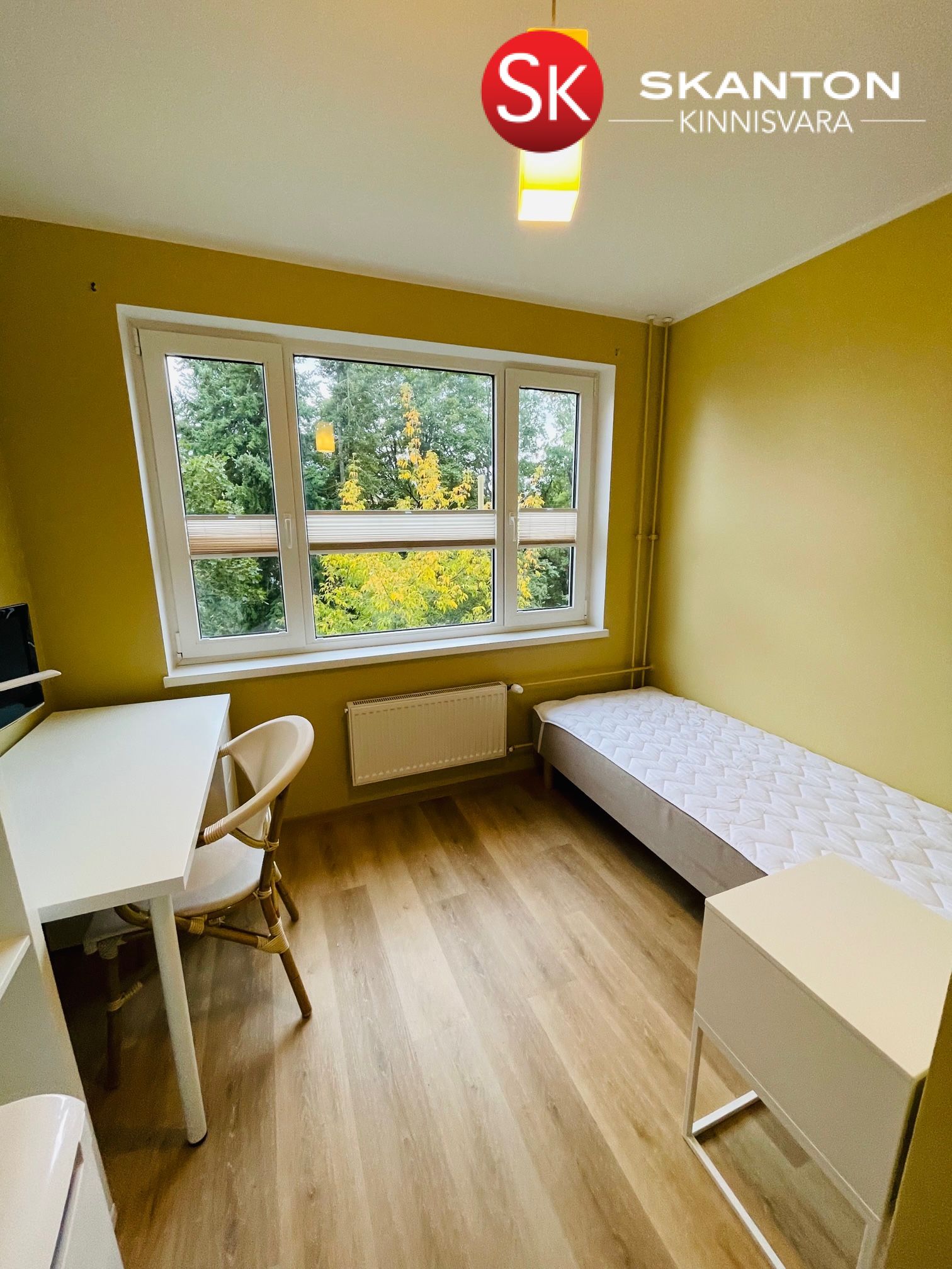 Korter on möbleeritud: riidekapp, voodi, öökapp, kirjutuslaud ja tool, külmkapp, riiul, WC, soe vesi el. boileriga. Pesemisruumis on elektriline põrandaküte.
